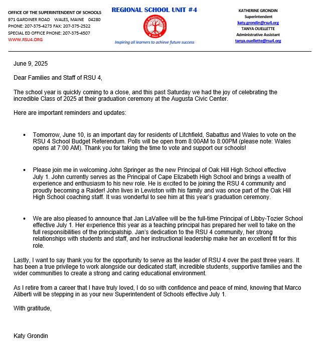 RSU #4 Superintendent Search You are invited to attend a Community Listening Session at OHHS